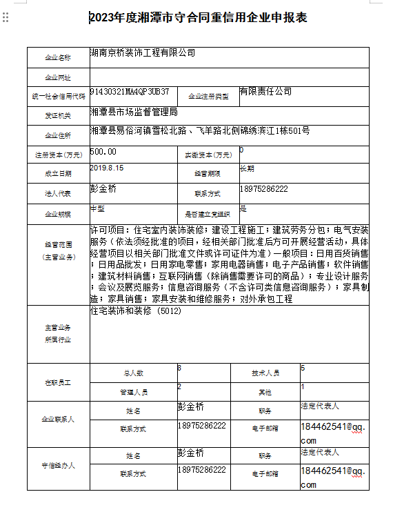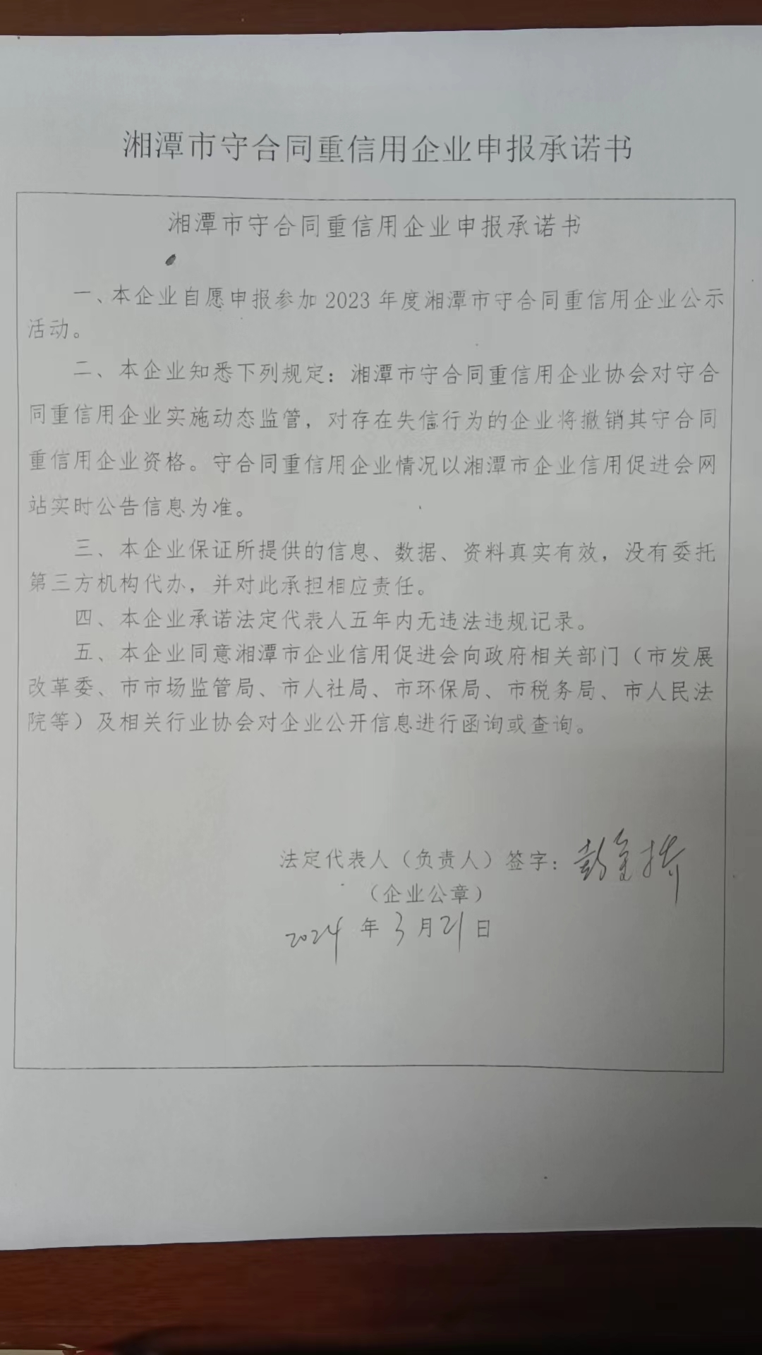 本企業(yè)根據(jù)《湘潭市守合同重信用企業(yè)申報規(guī)定》等編制 2023 年度企業(yè)信用報告書,并保證本報告書內(nèi)容真實、準(zhǔn)確、完整。