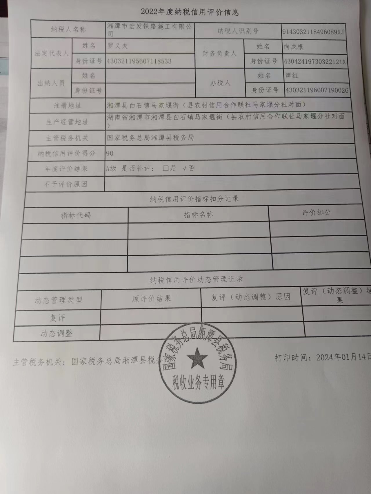 企業(yè)納稅信用等級(jí)報(bào)告: