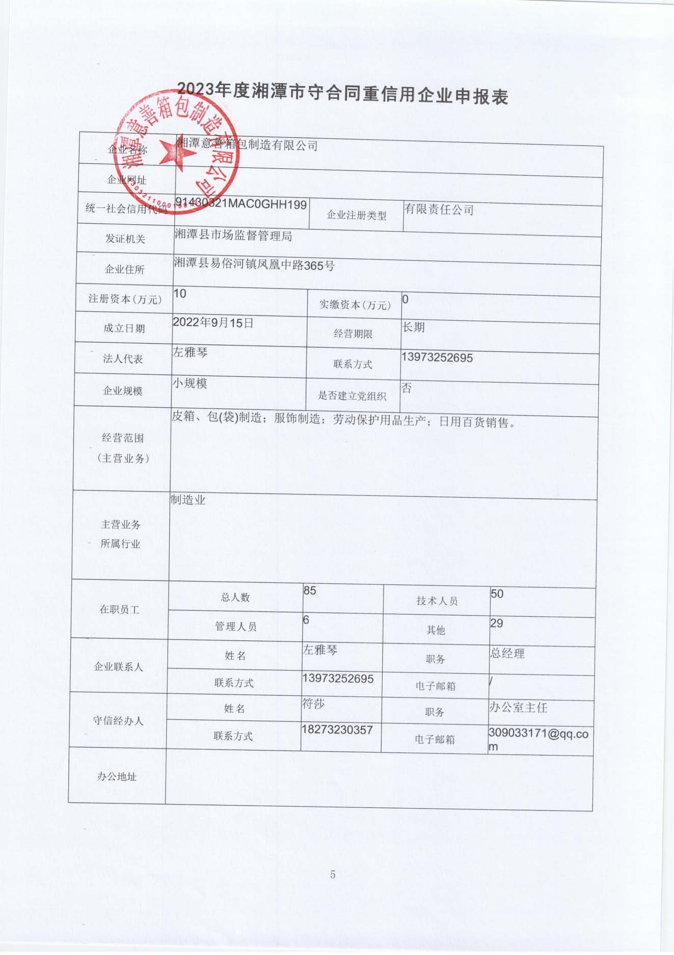 本企業(yè)根據(jù)《湘潭市守合同重信用企業(yè)申報規(guī)定》等編制 2023 年度企業(yè)信用報告書,并保證本報告書內(nèi)容真實、準確、完整。